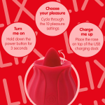 Το Rose Lix Κλειτοριδικό Παιχνίδι Rose συνδυάζει κομψό σχεδιασμό τριαντάφυλλου με στοχευμένη τεχνολογία διέγερσης. Με απαλή σιλικονούχα άκρη τύπου «γλώσσας», 10 λειτουργίες και διακριτικό μέγεθος, προσφέρει εξατομικευμένη απόλαυση σε μία κομψή, επαναφορτιζόμενη συσκευή.