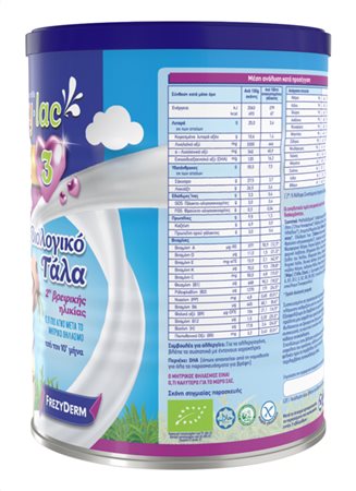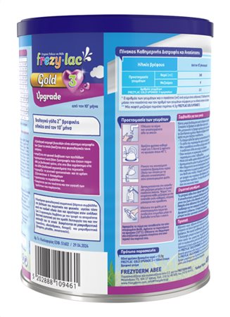Το FREZYLAC GOLD UPGRADE 3 είναι βιολογικό αγελαδινό γάλα σε σκόνη, κατάλληλο για βρέφη από τον 10ο μήνα στο πλαίσιο μιας μεικτής διατροφής.