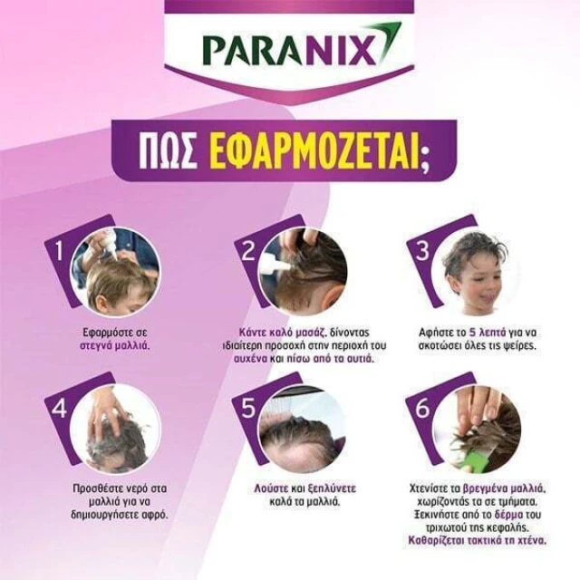 - Πριν από το στέγνωμα των μαλλιών, χτενίστε καλά με την κτένα Paranix για να αφαιρέσετε τις φθείρες και τα αυγά. Καθαρίστε τακτικά την κτένα.