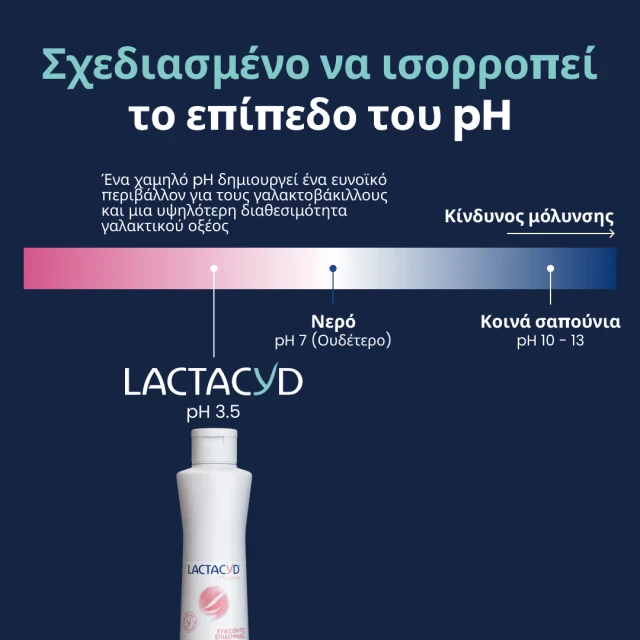 Το Lactacyd Pharma Sensitive (Ευαίσθητες Επιδερμίδες) παρέχει φροντίδα ειδικά σχεδιασμένη για την ευαίσθητη περιοχή των γυναικών που εμφανίζουν εύκολα ερεθισμό και ευαισθησία. Η προσαρμοσμένη τιμή pH του προϊόντος και η σύνθεσή του που είναι εμπλουτισμένη με βιολογικό L-γαλακτικό οξύ το καθιστούν ιδανικό για την καθημερινή φροντίδα των γυναικών με ευαίσθητο δέρμα, καθώς επίσης και για τις περιπτώσεις των περιστασιακών ερεθισμών.