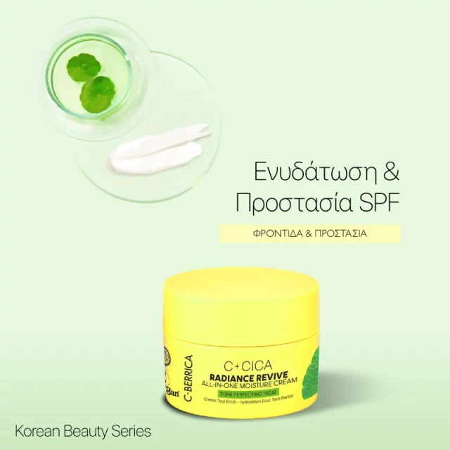 Κατάλληλη για όλους τους τύπους δέρματος, η C+Cica C-Berrica Radiance Revive προσφέρει ολοκληρωμένη ενυδάτωση, προστασία και αναζωογόνηση, αφήνοντας το δέρμα λαμπερό, υγιές και ελαστικό όλη την ημέρα. Η σειρά της Natura Siberica C+ Cica C Berrica, εμπνευσμένη από τη φιλοσοφία K-Beauty, συνδυάζει τις πιο hot τάσεις της κορεάτικης ομορφιάς με τα κορυφαία φυσικά συστατικά της Σιβηρίας. Η προσέγγιση Skin-First εστιάζει στην υγεία και ισορροπία της επιδερμίδας μέσα από πολυσταδιακές ρουτίνες που περιλαμβάνουν καθαρισμό, θρέψη, λάμψη και προστασία. Με CICA για καταπράυνση και ανάπλαση και Βιταμίνη C για φωτεινότητα και αντιοξειδωτική δράση, η σειρά χαρίζει υγιή, λαμπερή και ισορροπημένη επιδερμίδα, χωρίς ερεθισμούς.