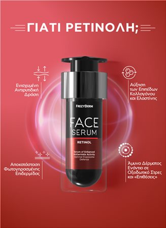Ορός αντιγήρανσης με πολυδύναμο σύμπλεγμα ρετινόλης για ενισχυμένη αντιρυτιδική δράση και ολική δερματική αναδόμηση. Ρετινόλη σταθεροποιημένης μορφής και εξασφαλισμένης βιοδιαθεσιμότητας, φυτικό μιμητικό ρετινόλης υψηλής απόδοσης και ισχυρό πεπτίδιο με αποτελεσματικότητα ρετινόλης, συνδυάζονται μοναδικά για ένα δραστικό αποτέλεσμα μείωσης βάθους, όγκου και επιφάνειας ρυτίδων. Τα επίπεδα κολλαγόνου και ελαστίνης αυξάνονται και οι δομικές αυτές πρωτεΐνες του δέρματος προστατεύονται σε όλες τις στιβάδες του. Η ειδική σύνθεση του ορού προστατεύει και επαναφέρει τη φωτογηρασμένη επιδερμίδα και το δέρμα εκκινεί διαδικασίες επιδιόρθωσης και αντιοξείδωσης και αμύνεται απέναντι στις ενδογενείς και εξωγενείς «επιθέσεις».