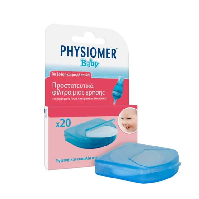 Τα προστατευτικά φίλτρα μιας χρήσης PHYSIOMER Baby συνιστώνται για χρήση με το Ρινικό Αποφρακτήρα PHYSIOMER Baby.
