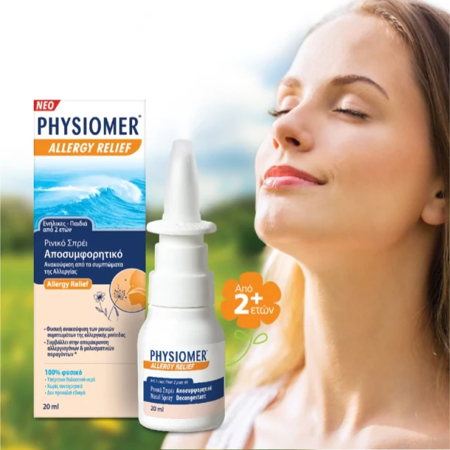 To PHYSIOMER Allergy Relief ανακουφίζει φυσικά και αποτελεσματικά από τα ρινικά συμπτώματα της αλλεργικής ρινίτιδας. Ενώ παράλληλα είναι ασφαλές στη χρήση: