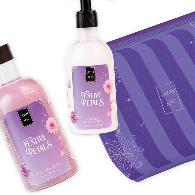 Lavish Care Promo Xmas Festive Petals Bath & Shower Gel 500ml & Glitter Body Lotion 300ml