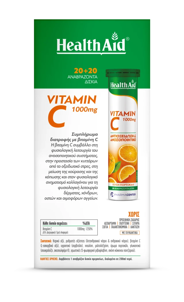 Health Aid Promo Vitamin C 1000mg με Γεύση Πορτοκάλι 2x20Αναβράζουσες Ταμπλέτες
