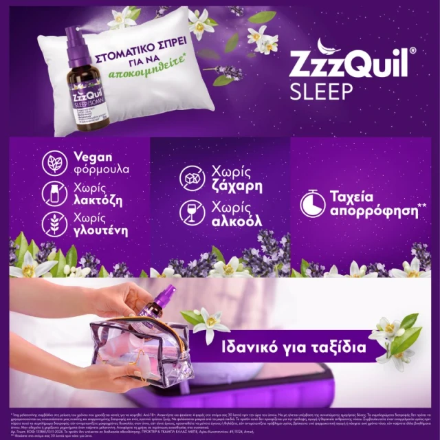 Το spray Zzzquil με μελατονίνη είναι ένα καινοτόμο, εύχρηστο συμπλήρωμα διατροφής, ειδικά σχεδιασμένο για να συμβάλλει στην ταχύτερη έλευση του ύπνου αλλά και στη βελτίωση της ποιότητάς του.